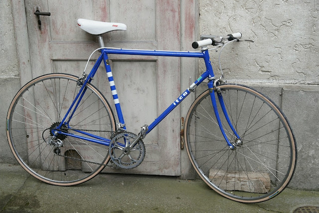 Stadtflitzer mit Renn-DNA aus der kleinen Werkstatt von Alois Iten. Stehen hoch im Kurs bei Kurieren wie Bahnfahrern. Aus Reynolds 531-Rohren, tiefe Seriennummer, aus den 80ern. Shimano 600EX "Arabesque"-Komponenten. Frisch umgebaut auf Kompaktlenker. Zurück in Zürich.