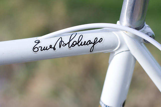 Nun gibt es Sammler, die es für eine Todsünde halten, ein Colnago-Rennrad umzubauen und mit einem Kompaktlenker zu versehen, um den modernen urbanen Ansprüchen genüge zu tun. Sie behaupten steif und fest, das einzige zulässige Habitat eines Colnago sei der Stelvio-Pass oder die Alp d'Huez. Nun, offensichtlich gehöre ich nicht zu diesen Traditionalisten und sehe das etwas liberaler. Trotzdem - sollte ich jemandes Gefühle verletzt haben, entschuldige ich mich in aller Form. Taschentücher können bei Zugzwang gratis bezogen werden. Überdies bitte ich zu bedenken, dass der Umbau gänzlich reversibel ist, sollte man sich für die Tour de France angemeldet haben.